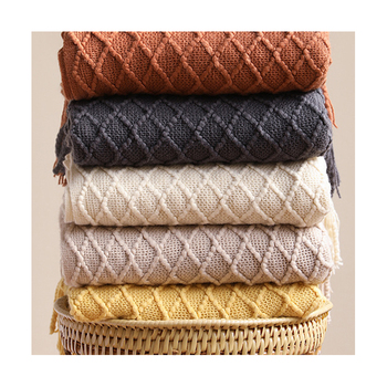 Bán buôn sang trọng dệt kim Acrylic Warp khác đan tùy chỉnh chăn Sofa giường couch trang trí ném chăn với tua